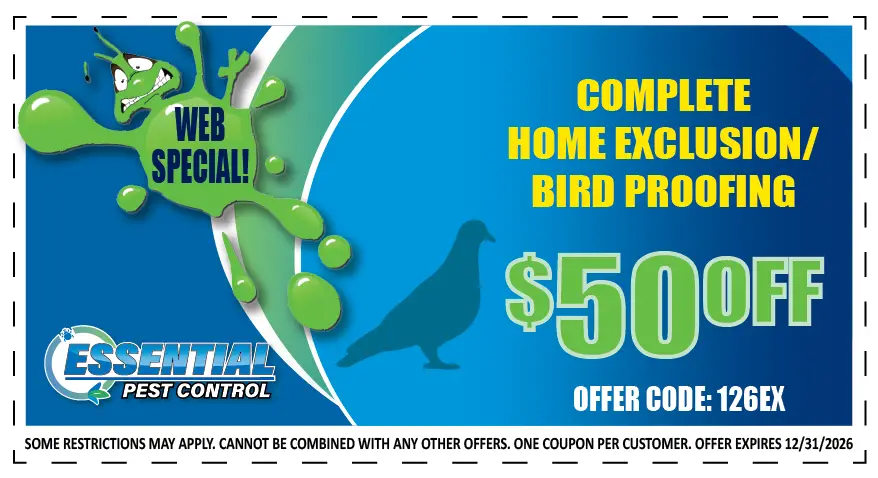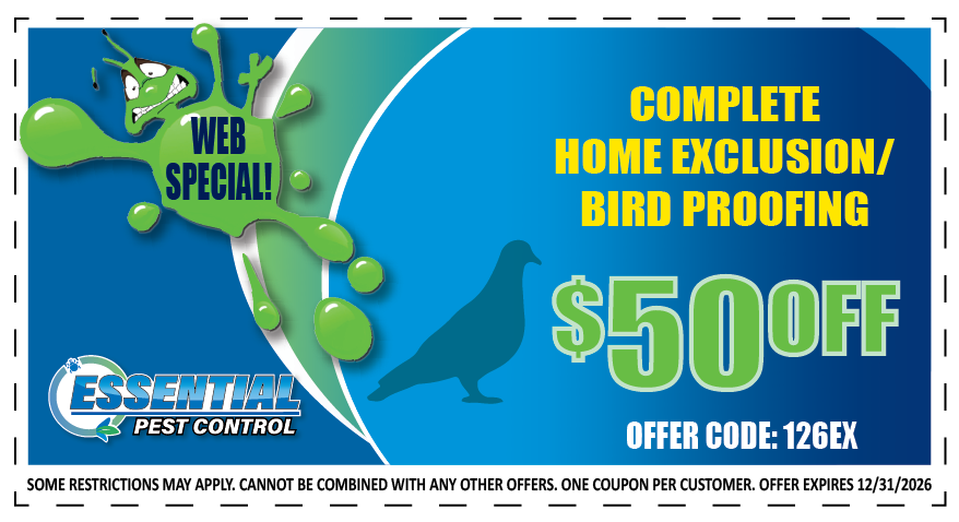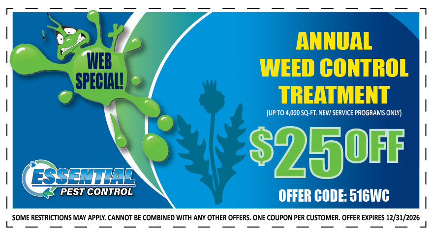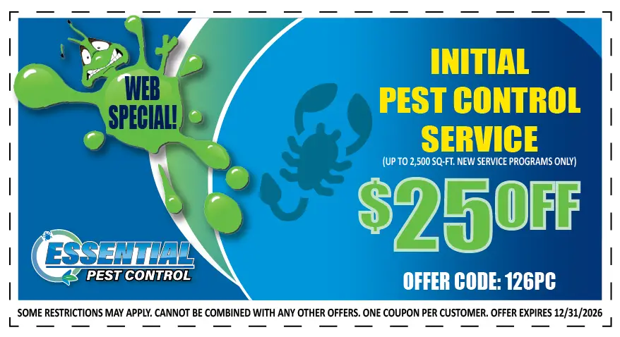 . Essential Pest Control has you covered. Call in with you offer code today!