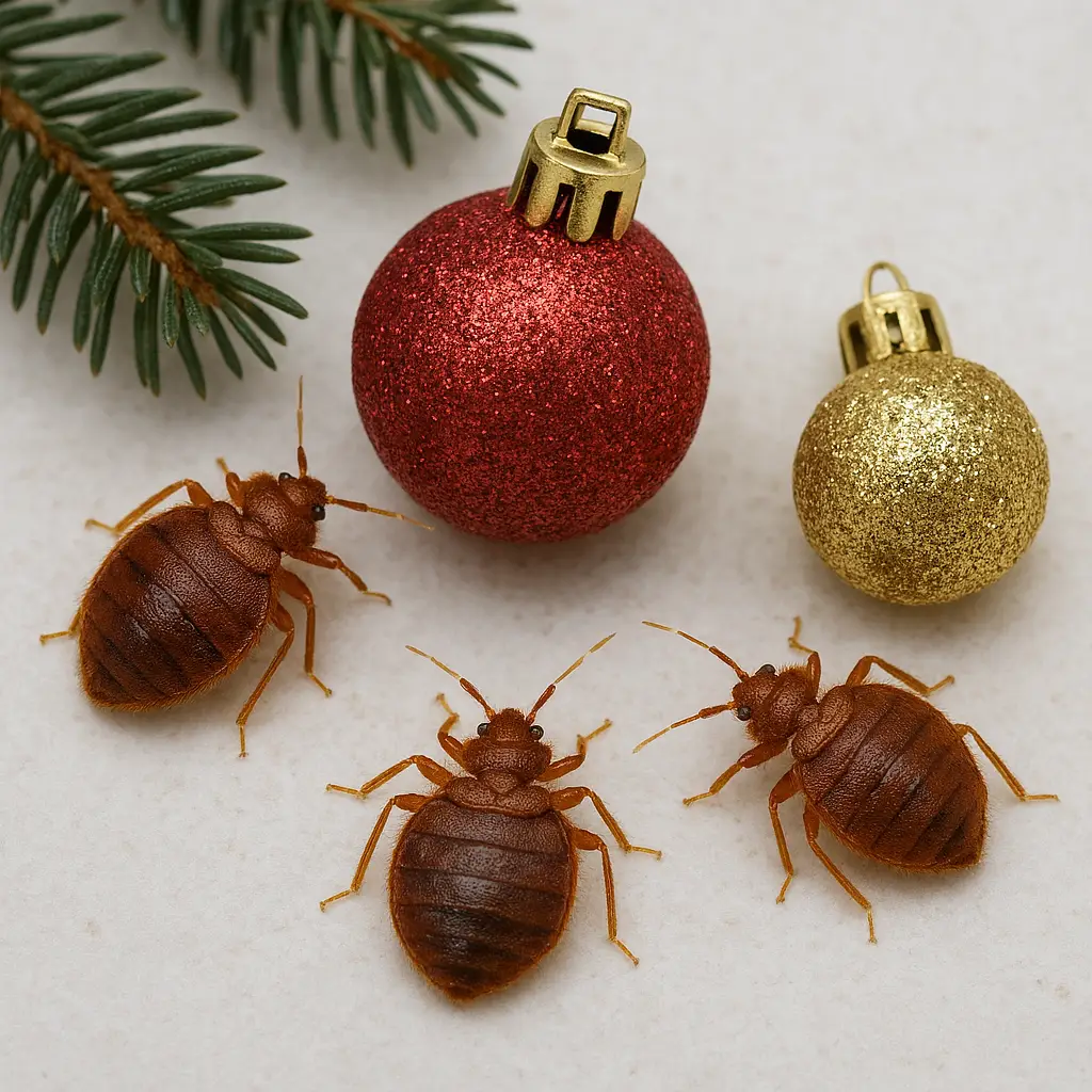 Once inside a home, bed bugs can quickly become a persistent problem. They tuck themselves into mattresses, furniture seams, baseboards, and even holiday décor that’s been stored away. Because they reproduce steadily and are excellent at staying hidden, an unnoticed introduction in December can turn into a full infestation by the new year. Early signs, such as small reddish stains on bedding, tiny dark spots, or unexplained bites—are easy to overlook during the busy holiday rush.